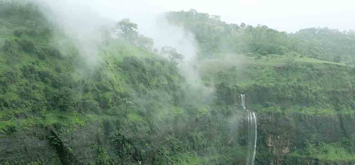 The lush green natural environment imparts a spectacular effect on this waterfall. The large vertical shaped gorge & speeding current imparts a smoky environment in and around the waterfall coupled with the roaring sound- Bhimkund has an unmatched spectacular appeal.