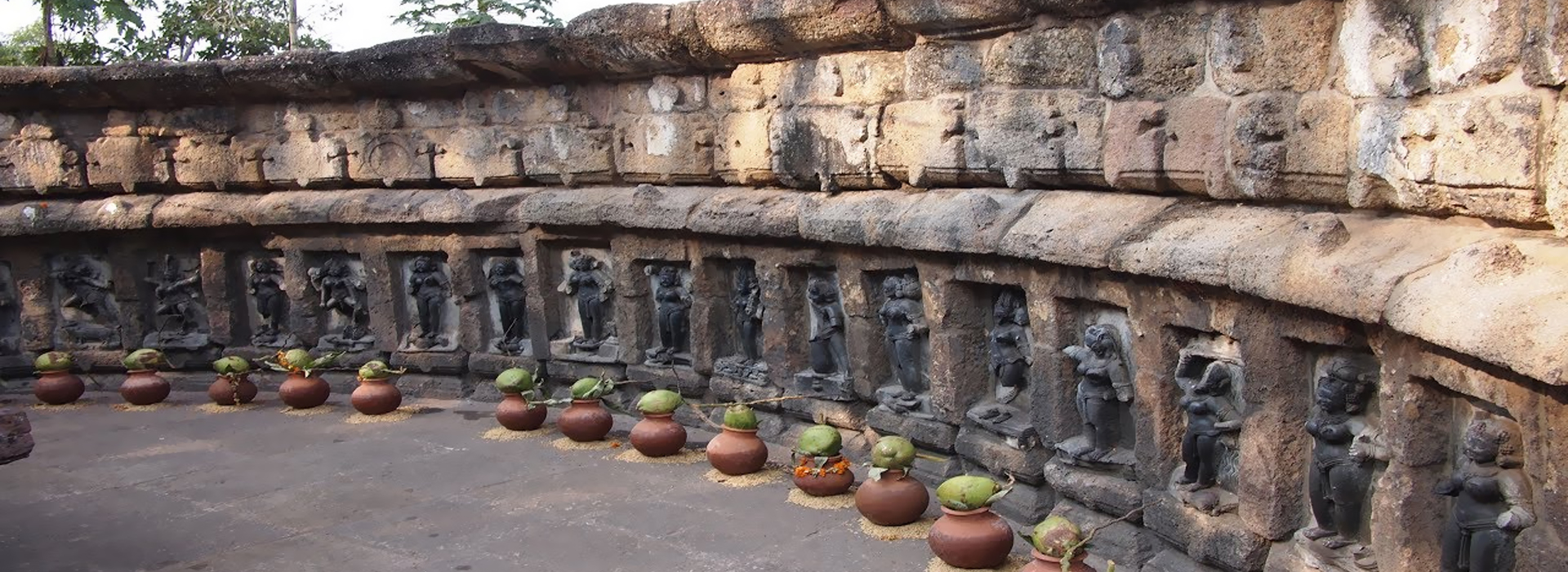 The circular open air structure is a stark departure from the tradition form of temple architecture in Odisha. This may have been necessitated by the fact that the cult worshipped the five elements – air, water, fire, earth and ether or sky. The yoginis are carved out of black slate stone and are depicted riding their vahanas (mounts) here.